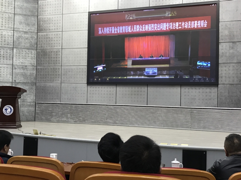 4月28日,全省教育领域专项治理工作动员部署视频会议在映月报告厅举行,校党委全体成员及相关部门负责人出席,会议由教育厅葛道凯厅长主持,省纪委蒋卓庆书记和王江副省长分别做重要指示。