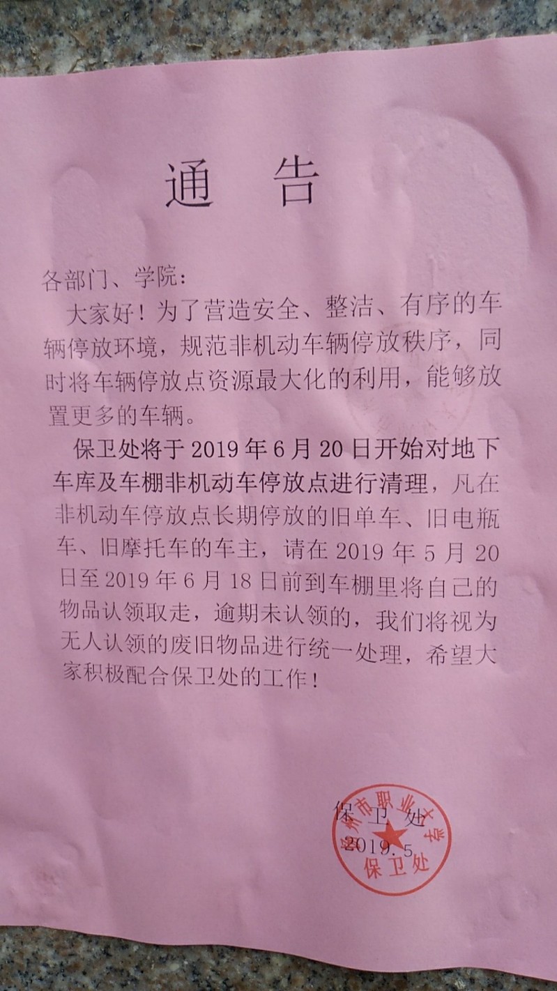 清理废旧车辆通告