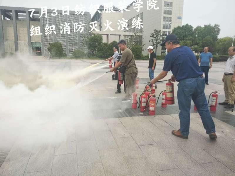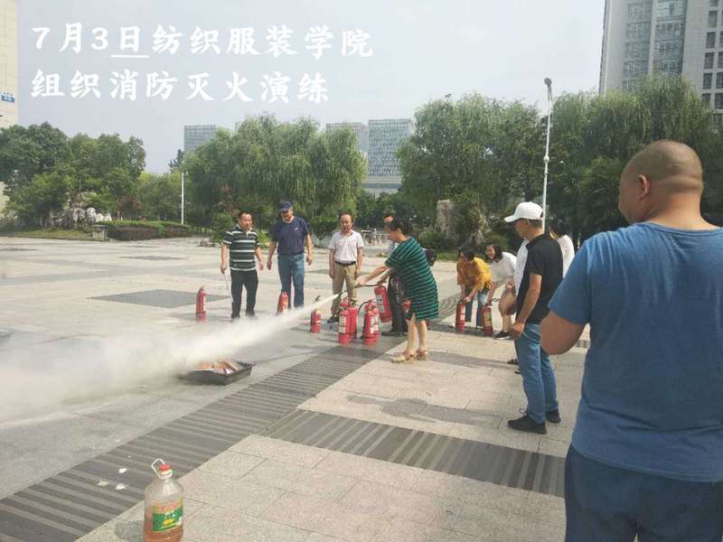 7月3日 保卫处协助纺织服装学院在教学区进行消防灭火演练。