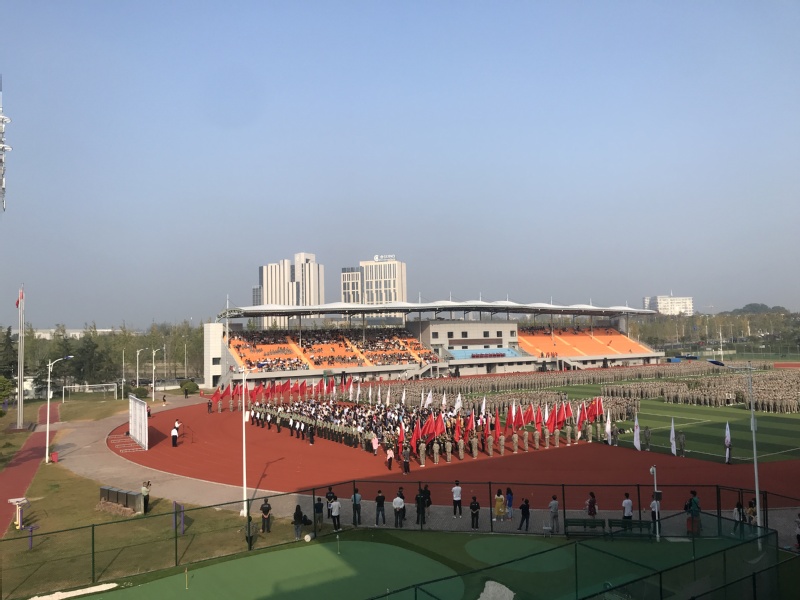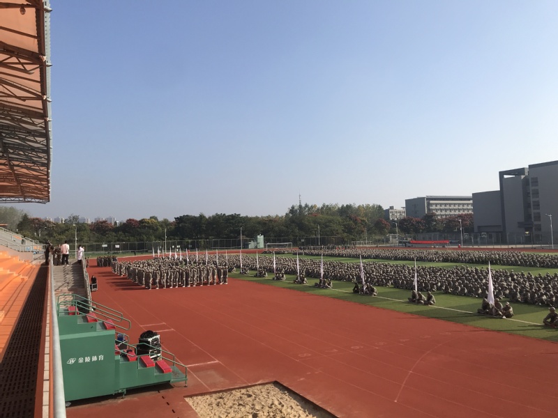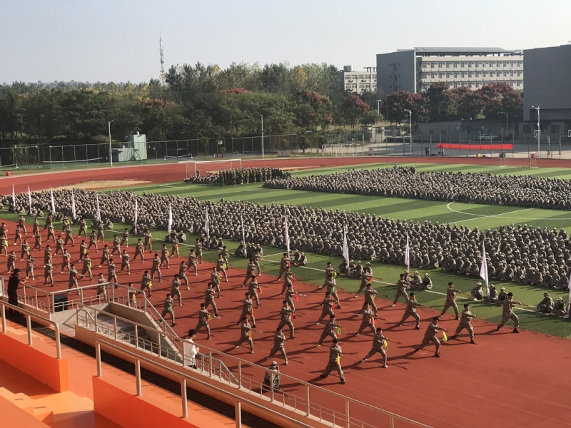 9月29上午,全体校领导和中层领导在校足球场举行庆祝新中国70周年华诞升旗仪式,周书记发表庆祝新中国70周年华诞讲话,升旗仪式还举行全体人员合唱歌唱祖国。庆祝新中国70周年华诞升旗仪式结束,全体校领导观看新生军训汇演。