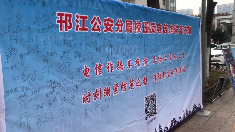 为进一步增强学生的自我安全防范意识,预防和减少电信诈骗案件的发生,保障学生的人身财产安全。12月19日,学院保卫处联合邗江公安分局,在校内开展了“防范电信网络诈骗”主题宣传活动。