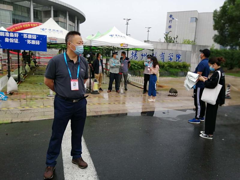 2020年6月21日上午,扬州市公开招聘事业单位工作人员笔试在我校进行。这次考试市领导、人社局和校领导高度重视,且具有考生人数多、来源范围广、入场时间较为集中等特点。为了考试顺利、防控有效、做到边防控边复工。防控安保组的领导分工负责,人员定位,师生分流,考生身份查验和测温,同时新盛派出所与交警也参与保障校门口通畅,确保了考试顺利。