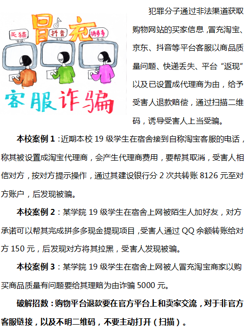 防范网络诈骗预警——冒充购物平台客服诈骗