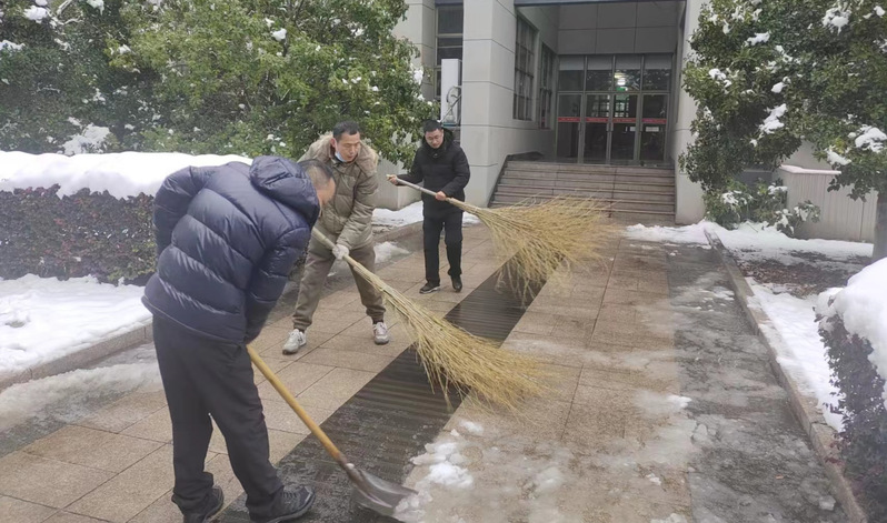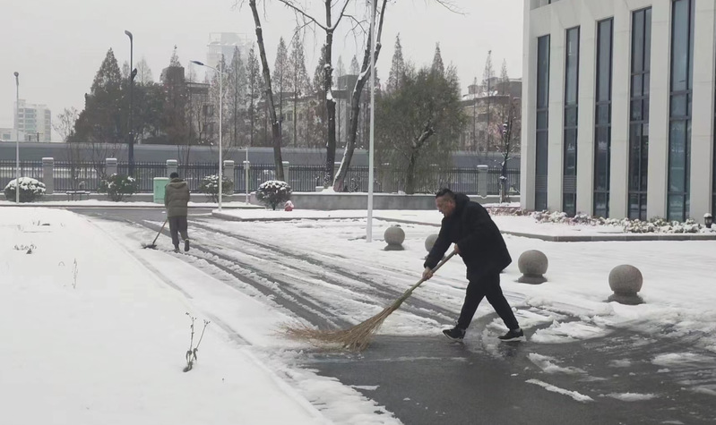 在此次扫雪除冰行动中,尽管天气寒冷,路面湿滑,但大家齐心协力,干劲十足,共同清扫学校主干道和地下车库门口的积雪积冰,为我校师生教学生活秩序的正常开展提供了有力保障。