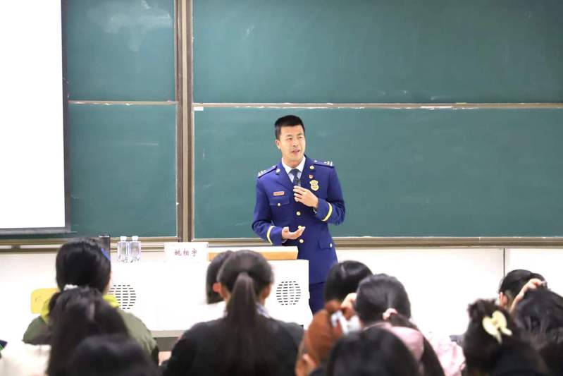 为进一步提高学校师生的消防安全意识,增强师生应急自救能力和自我保护能力,4月10日下午,学校保卫处特邀扬州市消防救援支队的姚相宇科长到我校开展消防安全知识专题讲座。保卫处、后勤处宿舍楼管理员及外语学院、体育学院、电汽学院的学生代表参加讲座,讲座由保卫处消防科王正军科长主持。
