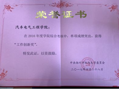 经本院师生共同努力,积极探索,开拓创新,求真务实,辛勤付出,我院在2016年度学院综合考核中,成绩突出,荣获“工作创新奖”。在今后的工作中,学院领导将带领全院师生、中共党员、团员青年,围绕学校中心工作,再接再厉,奋发进取,再创佳绩,为实现学院又好又快发展作出积极的贡献。
