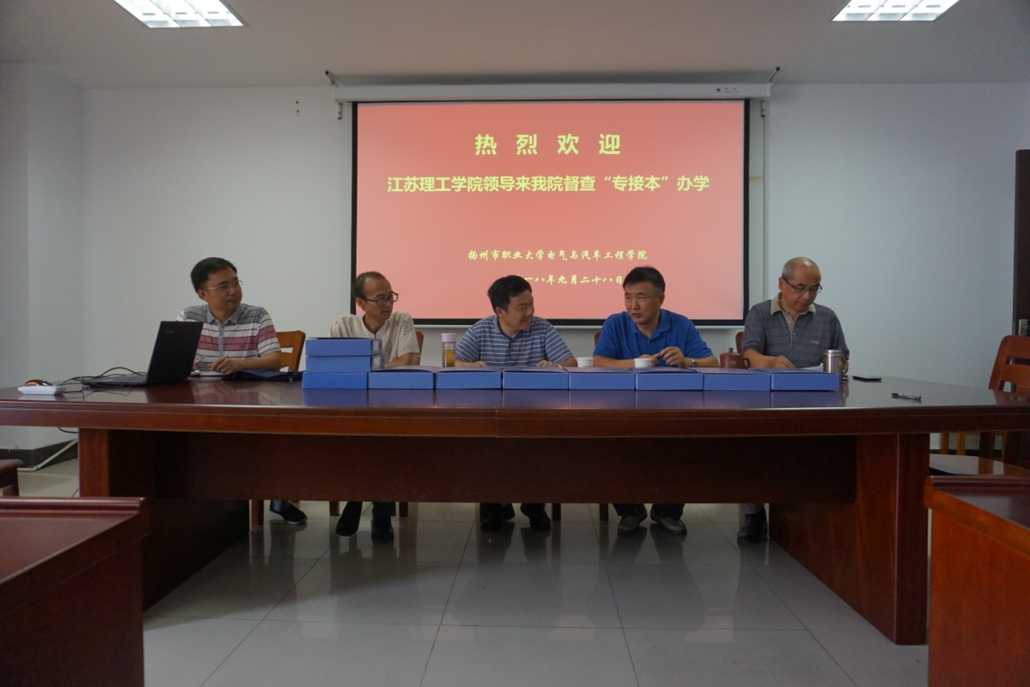 2018年9月28日上午,江苏理工学院继续教育学院副院长盛永健和教务科科长肖惠一行来我校电气与汽车工程学院进行教学调研,研讨专接本工作,学院党政领导、专接本管理负责人和班主任参加了研讨会。会议由学院副院长张友宏主持。