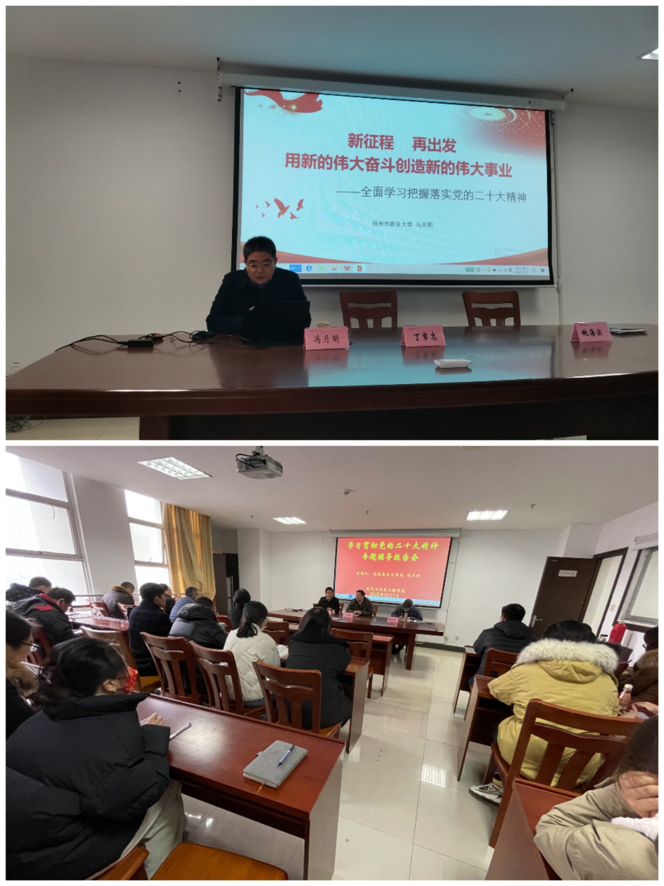 冯月明从党的二十大的主题和主要成果,过去5年的工作和新时代10年的伟大变革、马克思主义中国化时代化、中国式现代化、全面建设社会主义现代化国家的目标任务、坚持党的全面领导和全面从严治党、应对风险挑战等方面,为学院师生做了一场学习贯彻党的二十大精神的精彩的辅导报告。冯月明的报告主题鲜明、内涵丰富、阐述透彻;既系统全面、又突出重点,既深入浅出、又通俗易懂。让大家对党的二十大精神有了更加全面的认识、更加深入的理解、更加深刻的把握,对进一步推动广大师生深入学习贯彻党的二十大精神、切实把思想和行动统一到党的二十大精神上来起到重要的推动和促进作用。