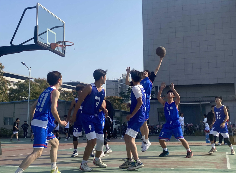 各队伍很早就到达了比赛场地,半个小时的热身后,队员们互相握手,摩拳擦掌,斗志昂扬九点一刻裁判宣布比赛正式开始。首先对战的队伍是电气2201和机电2201。两个队伍的队员展开激烈的角逐,比分交替上升,僵持不下,下半场经过默契的配合,电气2201拿下首胜。后面的比赛陆续进行,球员们努力奔跑的声音,篮球进框的声音,场边呐喊的声音交织在了一起,声声入耳,都是青春的激昂。一声声“加油!”和叹息后,比赛迎来了决赛。决赛队伍分别是:电气2201和机电2203,两只队伍都咬紧牙关,尽力抓住机会,在啦啦队员的呐喊声中,电气2201拿下比赛最后的胜利。所有球队都在那一刻爆发,防守,坚不可摧,进攻,势不可挡,更让我们看到了扬职大青年青春的模样。