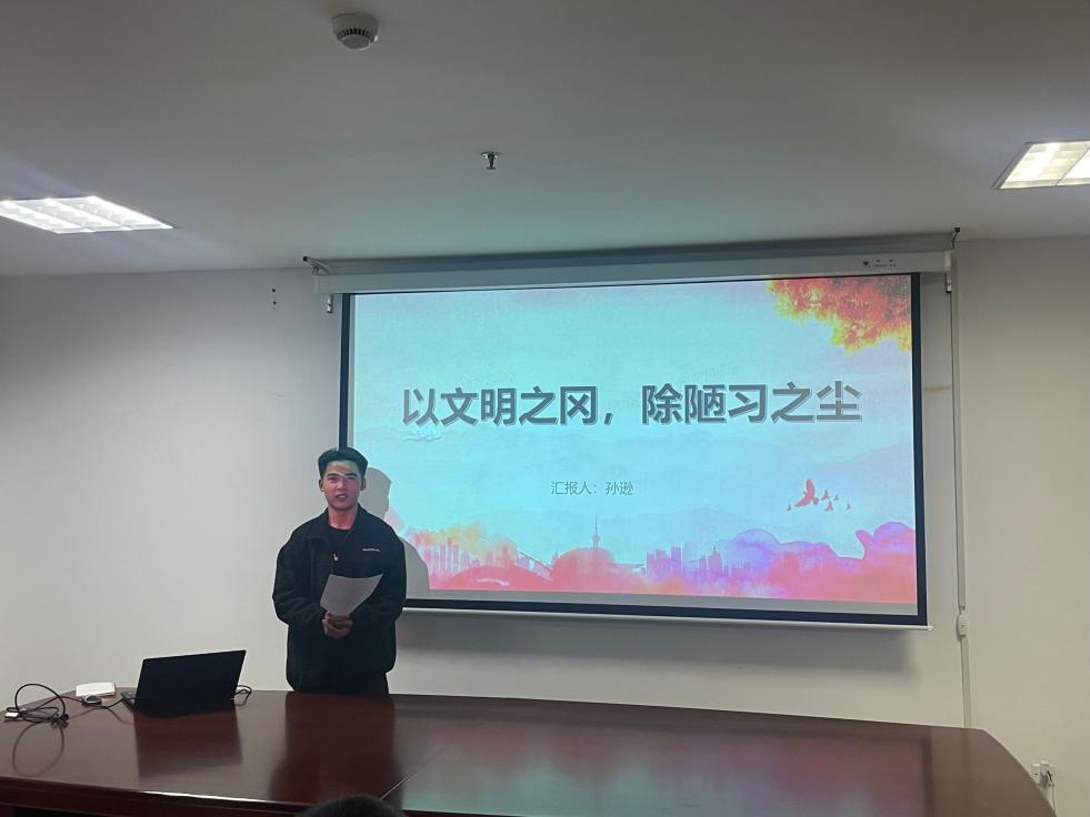 孙逊同学就“以文明之冈,除陋习之尘”为题,提出“勿以善小而不为,勿以恶小而为之”。从文明小细节出发,体现当代大学生的个人素质与文明修养。