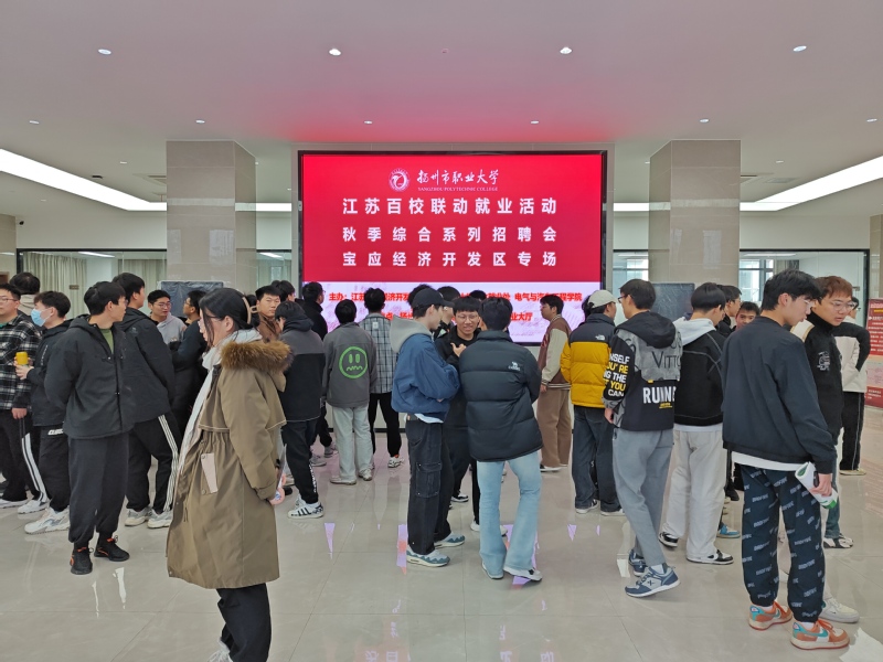 江苏宝应经济开发区的近二十家企业参加了此次招聘会,提供过百个高质量就业岗位,吸引近500位毕业生参加。招聘会现场人头攒动,气氛热烈,毕业生与心仪的用人单位深入交流,达成多个就业意向。招聘会取得了良好的效果,宝应经济开发区负责人感慨说道:“感谢学校搭建就业平台,解决了园区企业的用人难题,后续将保持和学校的常态化合作。”
