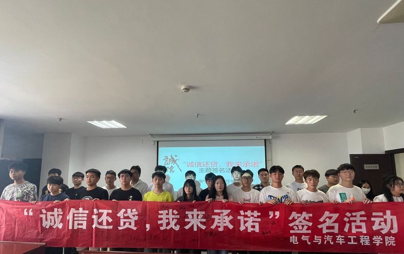 针对助学金评定、助学贷款申请和还款等过程中存在的学生缺乏诚信教育和某些受资助同学自我诚信意识等问题,我院开展了以 “诚信还贷,我来承诺”为主题集体签名活动,以此提高学生的诚信意识。