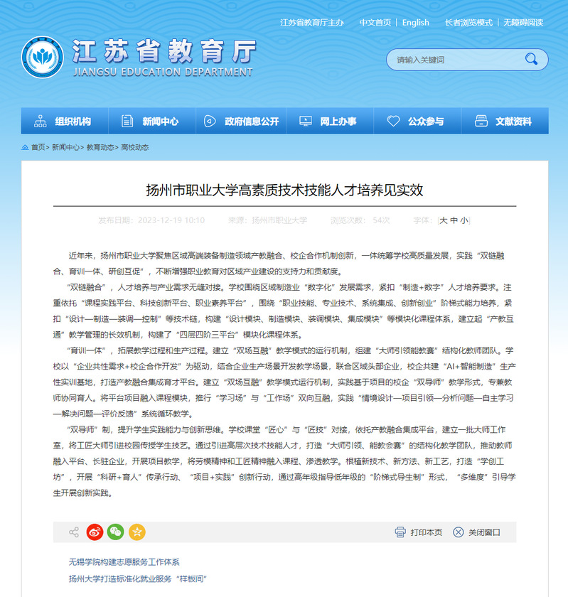 江苏教育——betway必威中文版 高素质技术技能人才培养见实效