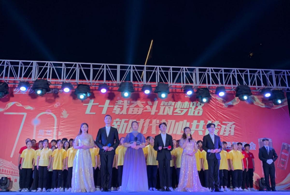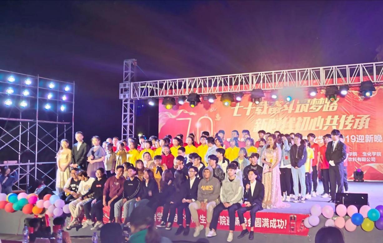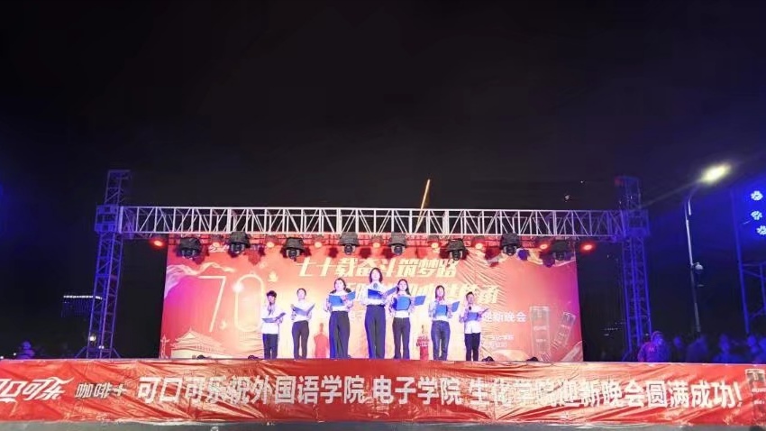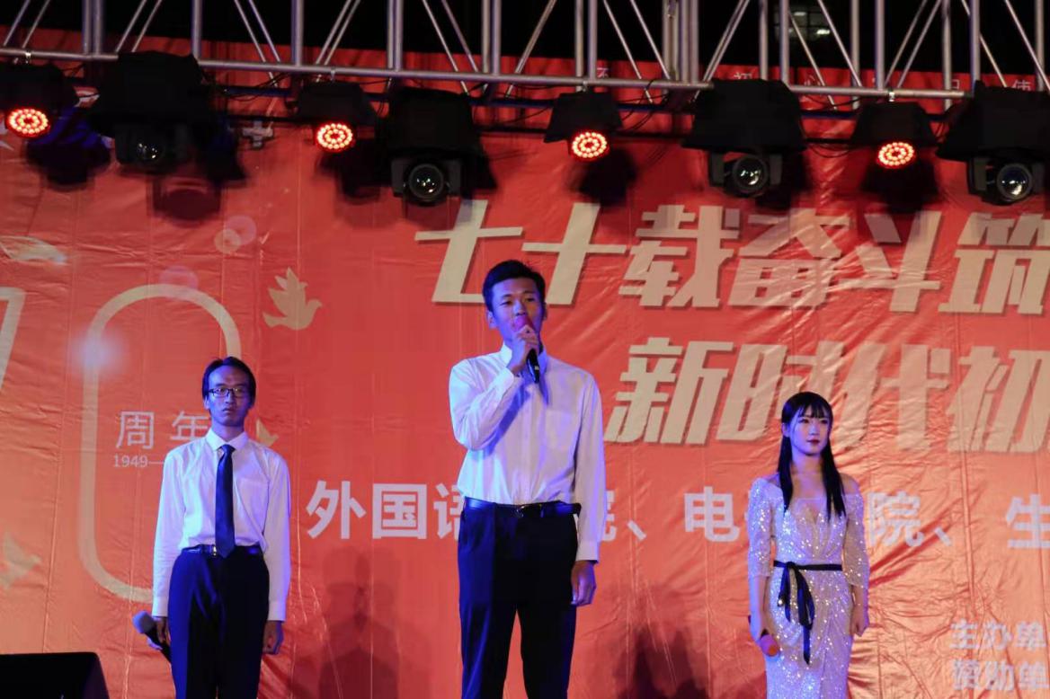 庆祝祖国成立70周年暨迎新晚会由《夜空中最亮的星》、《莫斯科郊外的晚上》、《礼仪之邦》等歌舞表演,以及《热血三句半》、《小王子》《表演专家》等的小品相声话剧组成,最后通过三院组合的大合唱《国家》传播伟大的社会主义价值观,激发学生斗志,也为同学们提供展示自己的舞台