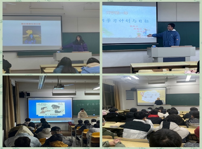做好维稳工作,用心用情用力为电子学子大学生活安全保驾护航。这是学院2023年春学期开学初各班“开学第一课”的重中之重内容。二十大精神学习、新学期规划目标、生命健康教育、防疫宣传、自律、劳动……这些内容也在各班“开学第一课”上精彩呈现。电子2202毛乔懿等同学分享寒假难忘的经历。通信2201班长苗宏刚同学畅谈了新学期的目标和方向,并分享学习工作两不误的方法。电信2103班开展“今日小幸运”活动,培养学生积极心理,引导学生学会调节情绪,主动适应新学期生活。学院分管领导观摩了电信2203等班级的开学第一课。