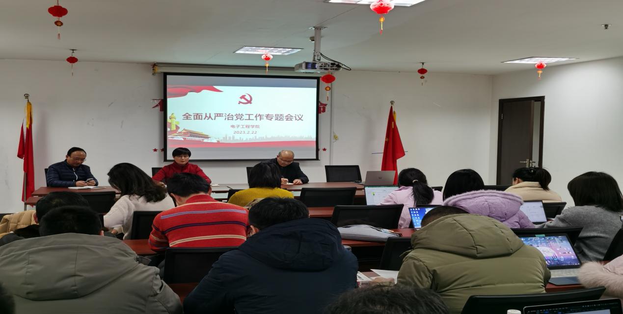 222日下午,电子工程学院在图书馆903室召开2023年全面从严治党工作专题会。学院领导、包括党员干部在内的教职工参加了会议。