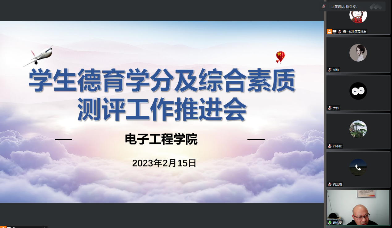 学院领导重视,落实推进工作。在校学生处下发通知后,学院立即研究落实相关工作,在线召开学生德育学分及综合素质测评推进会。各班班班主任、班长以及院学生会主要干部参加了会议。会上,学院党总支副书记陈久安要求大家改变过去班级测评工作小组包揽一切的做法,让每位同学参与到德育学分和综合素质的测评工作之中。结合今年学校采用新系统在学工工作平台开展测评工作相关要求,陈书记希望大家更新工作理念,创新工作方法,追求工作实效,让学制度、懂算法、知成绩、寻差距、定目标在学院各班蔚然成风,不断提速学生高质量发展,推动学院学生教育管理水平迈上新台阶。