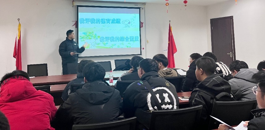 班长领学,指导学生填报。学院各班积极开展“我评我的德育学分,我测我的综合素质”主题班会,班长领学相关制度,并向每位同学讲解测评流程、关键点以及注意点。学生在系统中填报测评成绩、上报支撑材料时遇到问题总会得到温馨的指导。班级测评工作小组在大家的监督下开展核定工作。