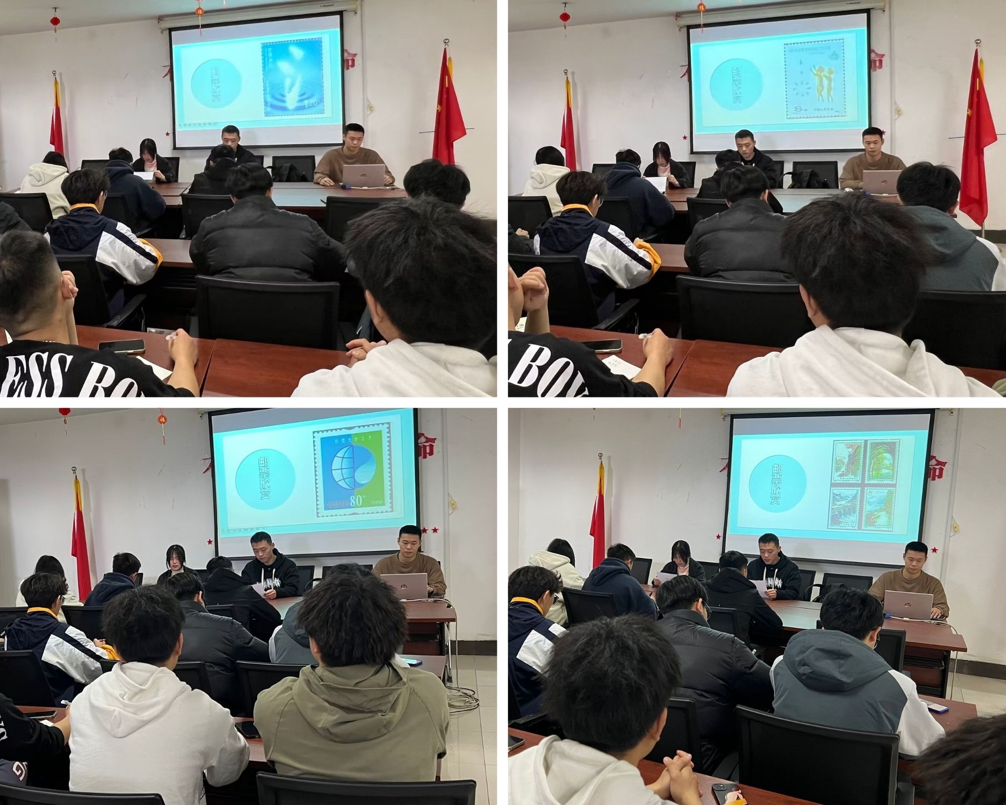 奔腾不息的长江水,飞流直下的庐山瀑布、烟波浩淼的青海湖……“邮之声”志愿队、电信2202潘鹏宇同学告诉大家,水文化、水资源、水利用、水保护等元素在邮票上都有反映,并列举了举世闻名的大型水利灌溉工程——红旗渠。1972年我国发行一套4枚《红旗渠》编号邮票。第一枚“愚公移山”,体现了河南省林县人民当年发扬愚公移山精神,在太行山的悬崖绝壁上奋战施工的情景。其余三枚分别是“青年洞”“桃源桥”“人间天河”,邮票图案反映了红旗渠工程的主要部分。潘鹏宇同学结合这套邮票讲述了20世纪60年代30万林县人民在极其艰难的条件下,为改变长期严重缺水状况,苦战10个春秋,仅靠一锤,一铲,两只手,在太行山悬崖峭壁上修建了一条全长1500公里红旗渠的故事。同学们从中深刻感受到了水是生命之源、生态之基、生产之要,并被这种自力更生、艰苦创业、团结协作、无私奉献的精神深深感动。红旗渠精神是以伟大建党精神为源头的中国共产党人精神谱系的重要组成部分,它永远激励着学院青年学生在保护水资源、传承水文化等生动社会实践中贡献青春、智慧和力量。