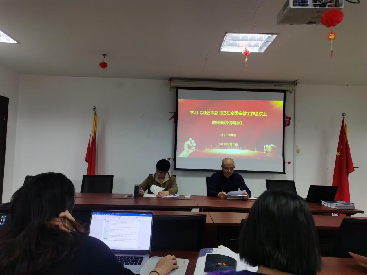 4月12日下午,电子工程学院党总支副书记陈久安在校图书馆903会议室带领全体教职员工学习贯彻习近平总书记在全国**工作会议上的重要讲话精神。