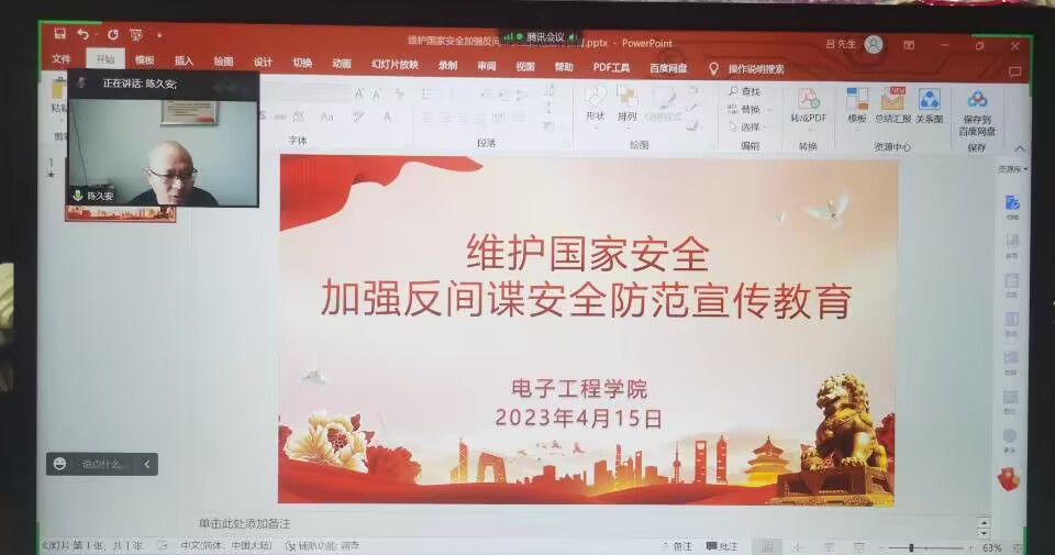 最后,陈久安希望全院教职工务必提高政治站位,坚持底线思维,深刻认识到维护国家安全的重要性务必强化使命担当,增强忧患意识,切实履行维护国家安全的责任和义务大家纷纷表示一定会积极参与维护国家安全工作,谨言慎行时刻注意保守国家秘密,在党的二十大精神引领下,以实际行动为学校事业高质量发展贡献电子学院力量。
