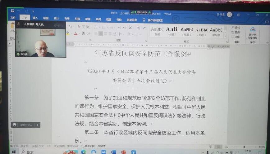 会上,陈久安领学了《江苏省反间谍安全防范工作条例》,要求全体教职工切实履行反间谍安全防范义务,认真遵守反间谍安全防范有关法律法规及制度,为国家安全机关等有关部门开展反间谍安全防范工作提供便利及协助。随后,全体教职工观看国家安全日公益宣传短片《答案》