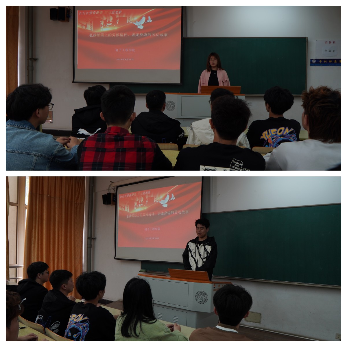 4月21日,电子工程学院组织开展了“弘扬邮票上的劳模精神,讲述身边的劳动故事”******。各班学生代表、“邮之声”志愿队成员参加了活动,活动以故事会形式在校园一角、崇思楼A311教室进行。