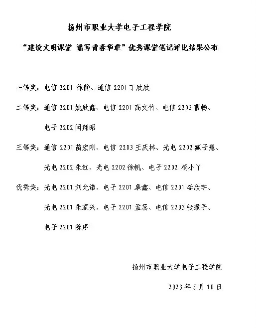 betway必威中文版 电子工程学院“建设文明课堂诸写青春华章”优秀课堂笔记评比结果公布