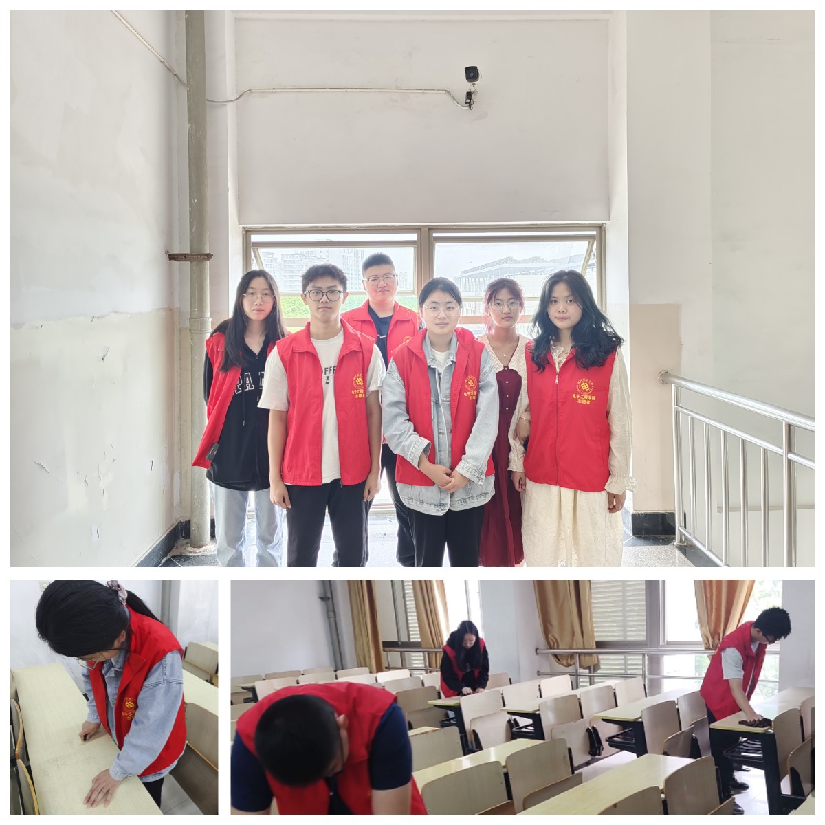 课桌涂鸦清理。院学生会学习部号召全院同学向“课桌涂鸦”说“不”,还课桌一片清洁,给思想一方绿地,共创美好的学习环境。电信2103杜中衍、电信2202戴胜利等六位同学组成突击队,对教室课桌上的污渍涂鸦以及一些广告残留物进行清理。认真检查每个角落,一遍遍来回擦拭,有时用力过猛使课桌发出震动声响。一桶桶浑水被提走,一桶桶净水又被提来,在志愿者们辛勤劳动中,一张张课桌还原出一片片“净”彩。