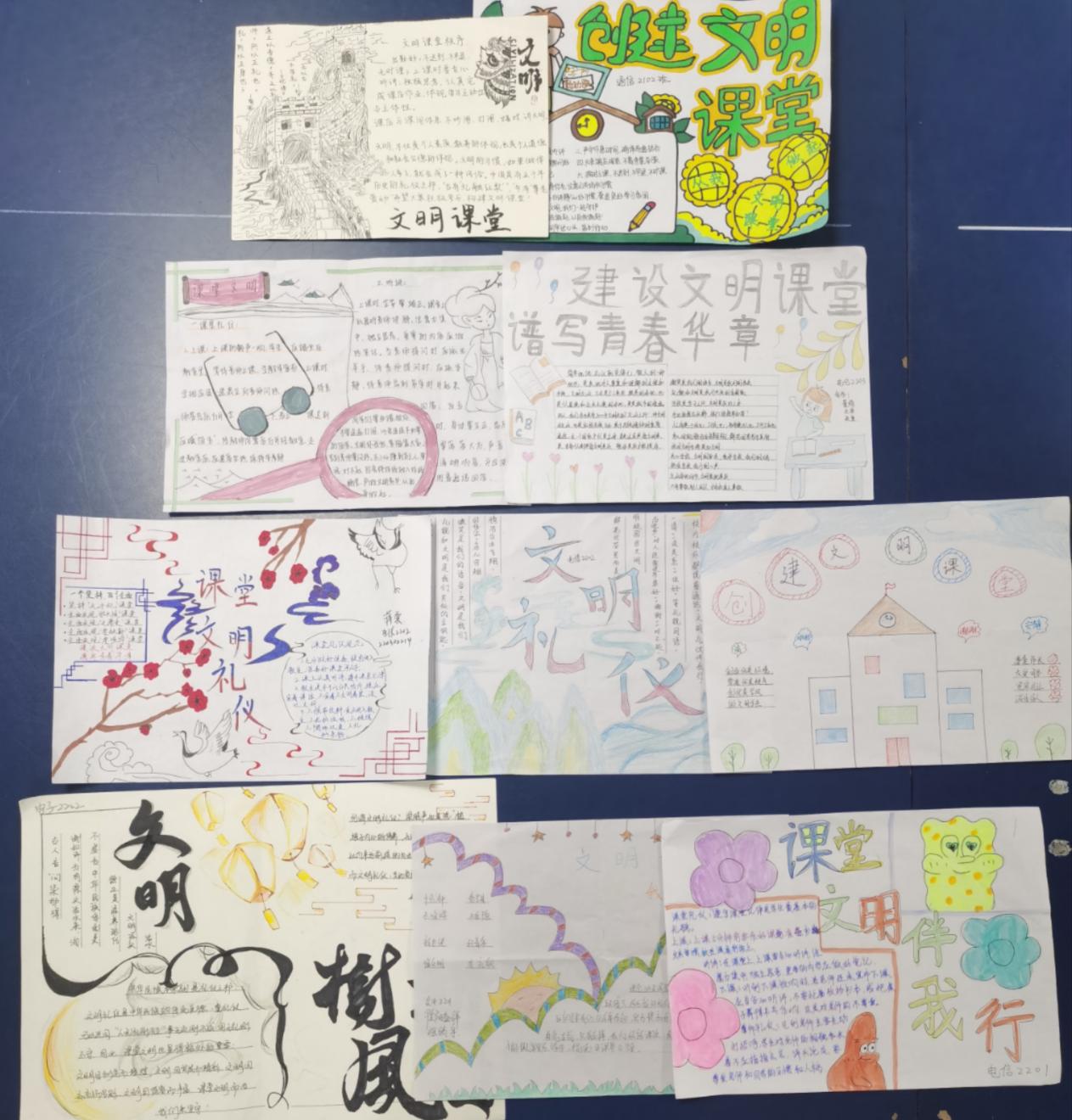 手抄报比赛。各班发挥想象力和创造性,紧扣“课堂文明建设”主题,积极寻找课堂礼仪,课堂文明准则,名言警句等素材进行精心设计。参赛作品图文并茂,版面设计美观,让人赏心悦目。经过评选,通信2102等9个班分获一、二、三等奖。手抄报比赛活动有力促进学生课堂文明素养意识的形成。