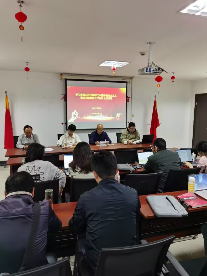 5月10日下午,电子工程学院在校图书馆903室召开学习贯彻习近平新时代中国特色社会主义思想主题教育专题会,会议由院党总支副书记、院长吴振慧主持。