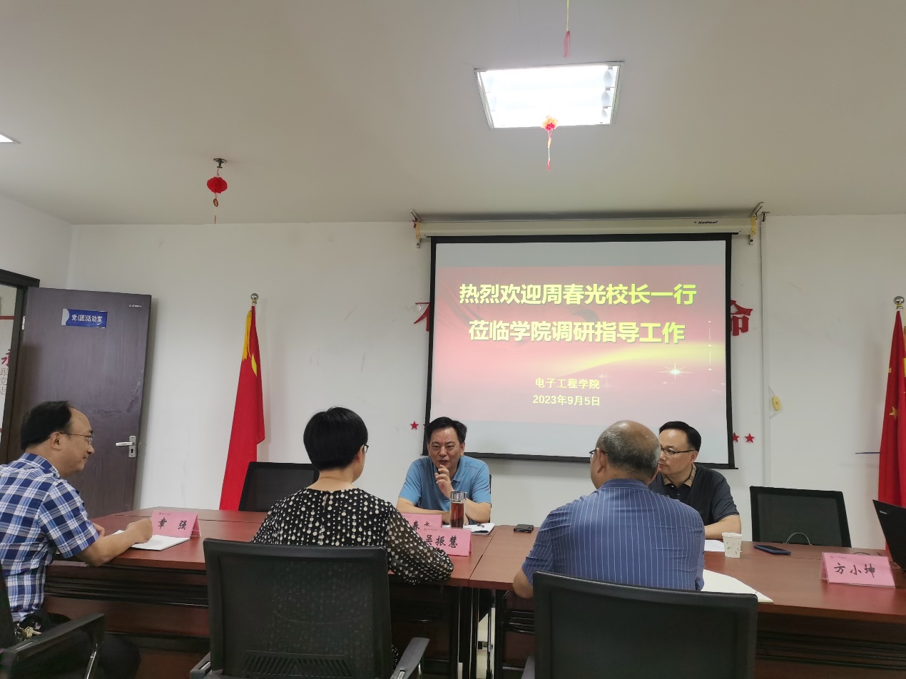 9月5日上午,党委副书记、校长周春光赴电子工程学院调研指导工作。学院党政领导班子成员参加了会议。