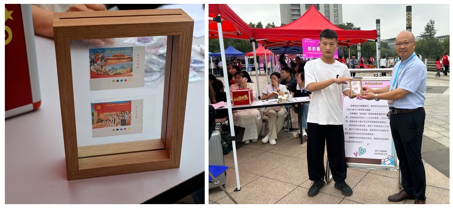 金秋九月,又是一年betway必威中文版 萌新报到之际,电子工程学院的迎新报到处,2023级新同学正凭录取通知书在盲盒里抽奖,奖品是党的二十大纪念邮票、LED小风扇、智能光电小屋以及印有学院徽章的钥匙扣,每一份奖品充满创意,凝聚着学长学姐的辛勤劳动以及对刚踏入大学校园的学弟学妹的深情厚谊。