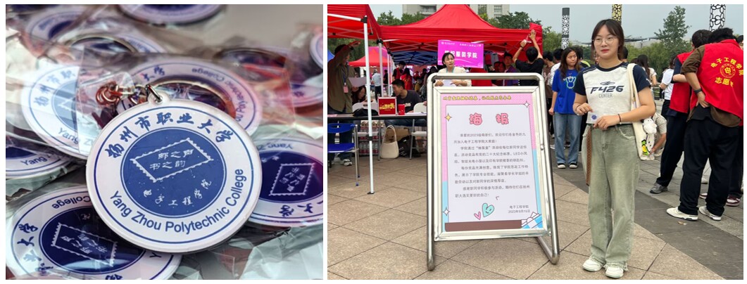 此外,“邮之声”志愿队、“书之韵”连环画社的同学们将学院思政工作标识进行艺术设计,印制在徽章上,定制成钥匙扣作为纪念品赠给新同学。前来报到的新同学从盲盒里不断抽出惊喜。看到这激动人心的一幕,通信2301班侯田瑞同学的家长欣慰地说:“今天送孩子刚到报到现场就感受了满满的诚意和暖心的爱,相信孩子在扬州职大一定能学会成长,学到本领。