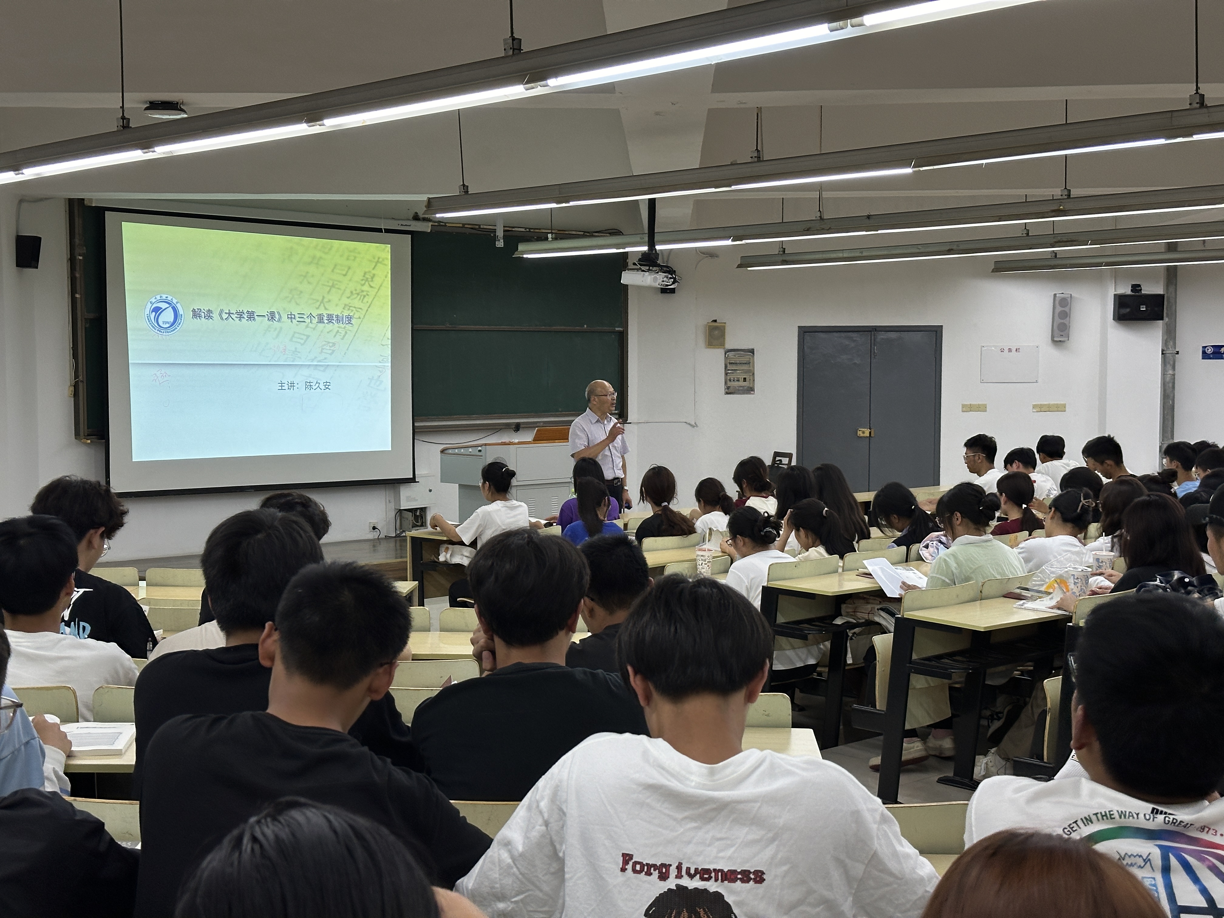 926日晚,电子工程学院2023级全体新同学在知行楼D201教室听取了学院党总支副书记陈久安的《解读<大学第一课>中三个重要制度》的专题讲座。