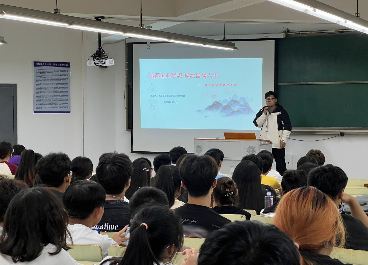 926日晚,茆海德同学在校知行楼D201教室以“追逐创业梦想描绘自强人生”为题向268名新同学分享了他的创业故事。