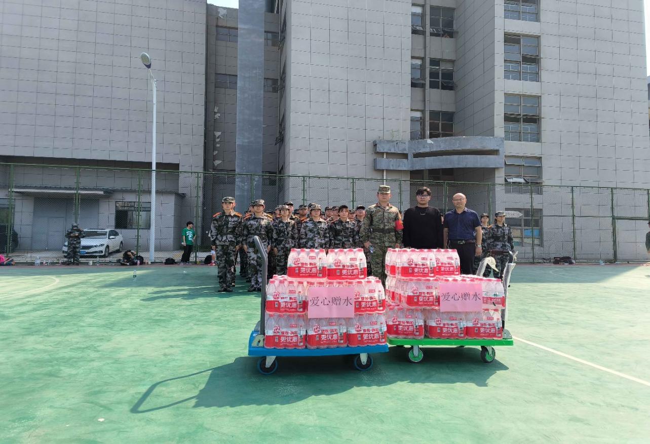 军训第一天,扬州市职业大学电子工程学院通信2102班茆海德同学用自己的创业利润自发购买一批饮用矿泉水送到学院2023级新生军训场上,为烈日炎炎下的学弟学妹上秋日凉爽。