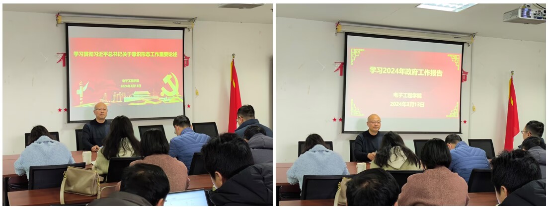 3月13日下午,电子工程学院在校图书馆903会议室召开学习全国“两会”精神专题会,会议由院党总支副书记、院长吴振慧主持,学院领导、全体教职工参加了会议。