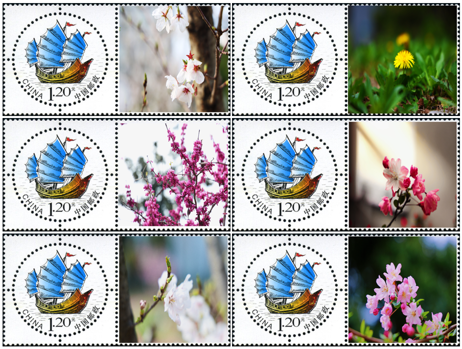 “把我们拍摄的花儿设计成邮票吧。”“书之韵”连环画社社长吕振宇同学的提议立刻得到大家的响应。彭文浩等同学从所拍摄的照片中遴选出六张,精心设计在2014年我国发行的个性化专用邮票“梦想起航”的附图部分。桃花、白山桃花、海棠花……这一朵朵校园的花被制成了邮票,在学院师生中流传,颇受青睐。