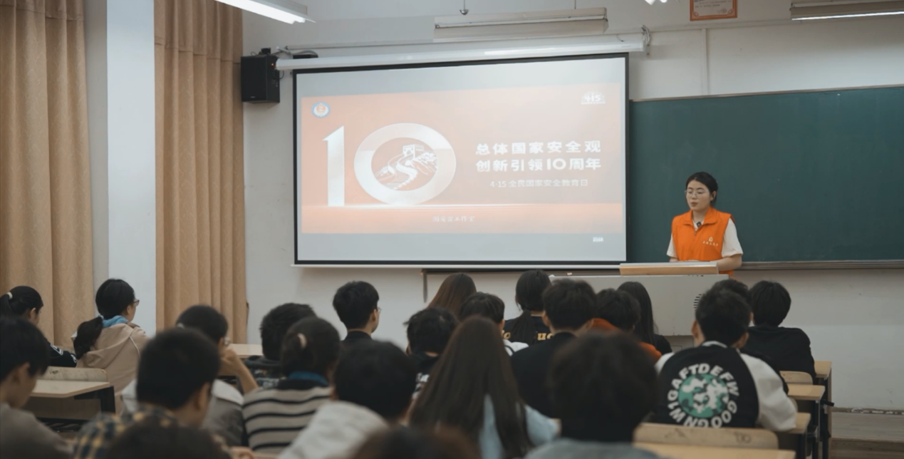 “各位学弟学妹晚上好,今年4月15日是第九个全民国家安全教育日,主题是总体国家安全观,创新引领十周年……”晚自习期间,在崇文楼A411教室里安全教育系列活动正在进行。