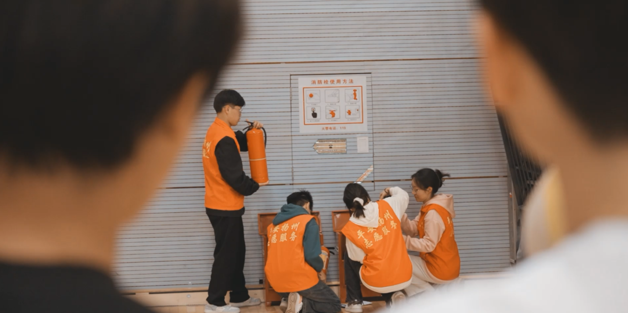 下午2点半,学生社区篮球场北侧的消防演练活动正在开展。平安志愿者认真示范操作要点,同学们一个个情绪高涨,争先恐后地参与演练。这项活动提高了大家应对突发火灾的自防自救能力。