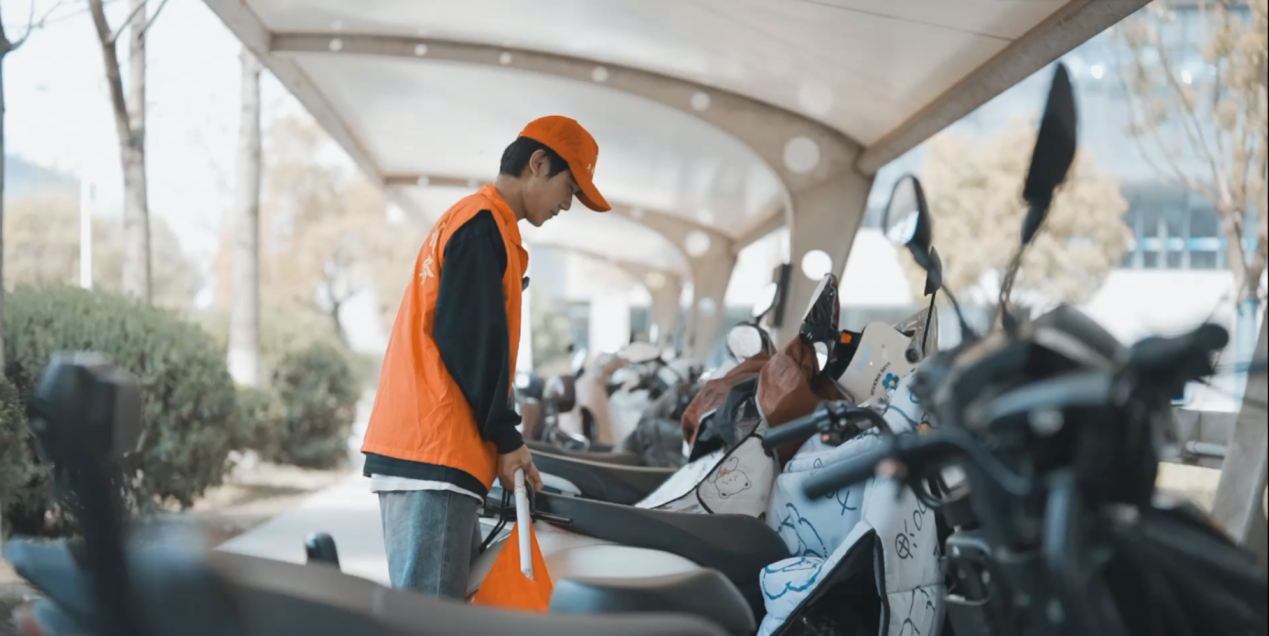 清晨六点半,伴随一阵急促的手机铃声,电信2302班彭文浩同学立即起床,迅速穿戴整齐走出了宿舍,奔赴他的第一班岗——校园规范停车引导员。面对陆续骑车来上课的师生,彭文浩微笑着引导他们在车棚中有序规范地停车。上课铃响之后,彭文浩会认认真真地整理一下停放的车辆。“都是顺手的事儿,整理后大家取车就方便了,一点儿也不累。”彭文浩有些羞涩地说道。