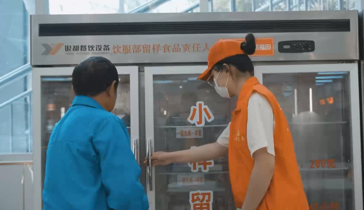 十一点钟左右,学生第一食堂人头攒动,前来就餐的同学络绎不绝。电信2202班戴胜利同学在食堂工作人员带领下,开始工作了。她对今天的食堂留样菜品进行检查和拍照记录。志愿者们每天重复这样的工作就是为了让身边的同学吃得更加安心、更加放心。