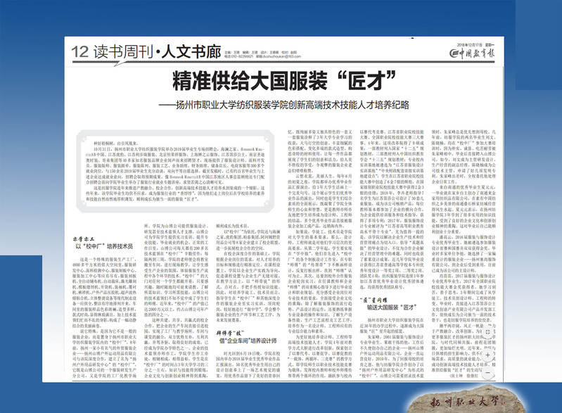 2.2018年12月17日 中国教育报《精准供给大国服装“匠才”》