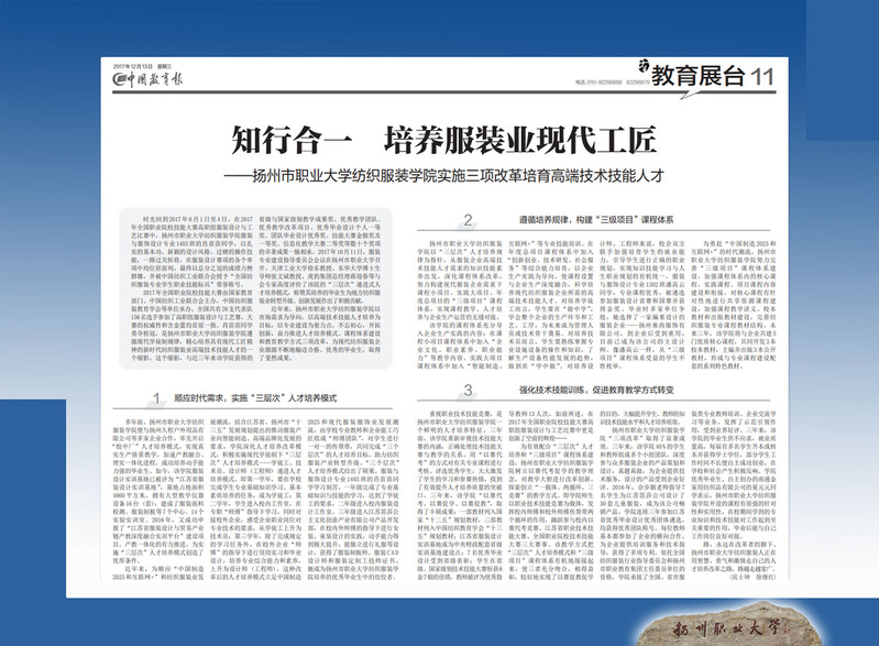 1.2017年12月13日 中国教育报《知行合一 培养服装业现代工匠》