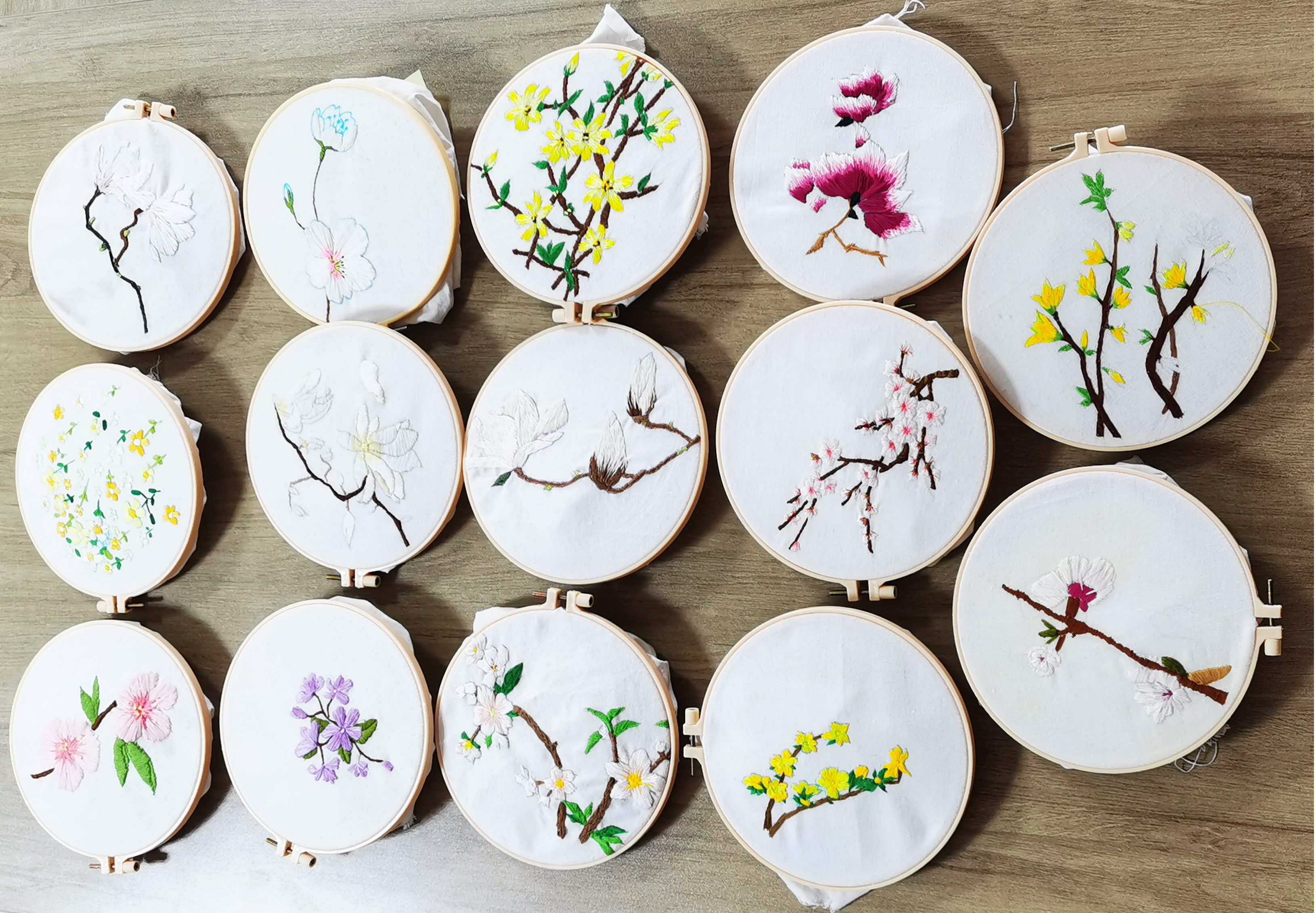 刺绣是独属于中国人的指尖艺术,每一针,每一线,都承载着深厚的历史与文化底蕴,是一门既古老又现代的艺术,具有独特的魅力和吸引力。春日的校园满树繁花,春意盎然,环境怡人,为展现同学们爱学校、爱生活的精神风貌,本次大赛以“校园春花”为主题,现场进行图案设计、色彩搭配,飞针走线,细细的绣花针飞快地在指尖舞动,勾勒出一朵朵鲜艳的花,敏行楼旁的玉兰粉嫩白皙、映月河畔的迎春金黄灿灿、图书馆前的梅花嫣颜似染......选手们用心勾勒着作品,线条明快,方寸之间尽显一针一线的“磨炼”。经过数个小时的紧张比赛,同学们都完成了自己的作品,经刺绣社团李卉老师的点评共有14名同学的作品获奖。随后李卉老师根据每个人技能水平给出了专业的提升指导,希望同学们能够一如既往的热爱刺绣,钻研刺绣,发扬刺绣。
