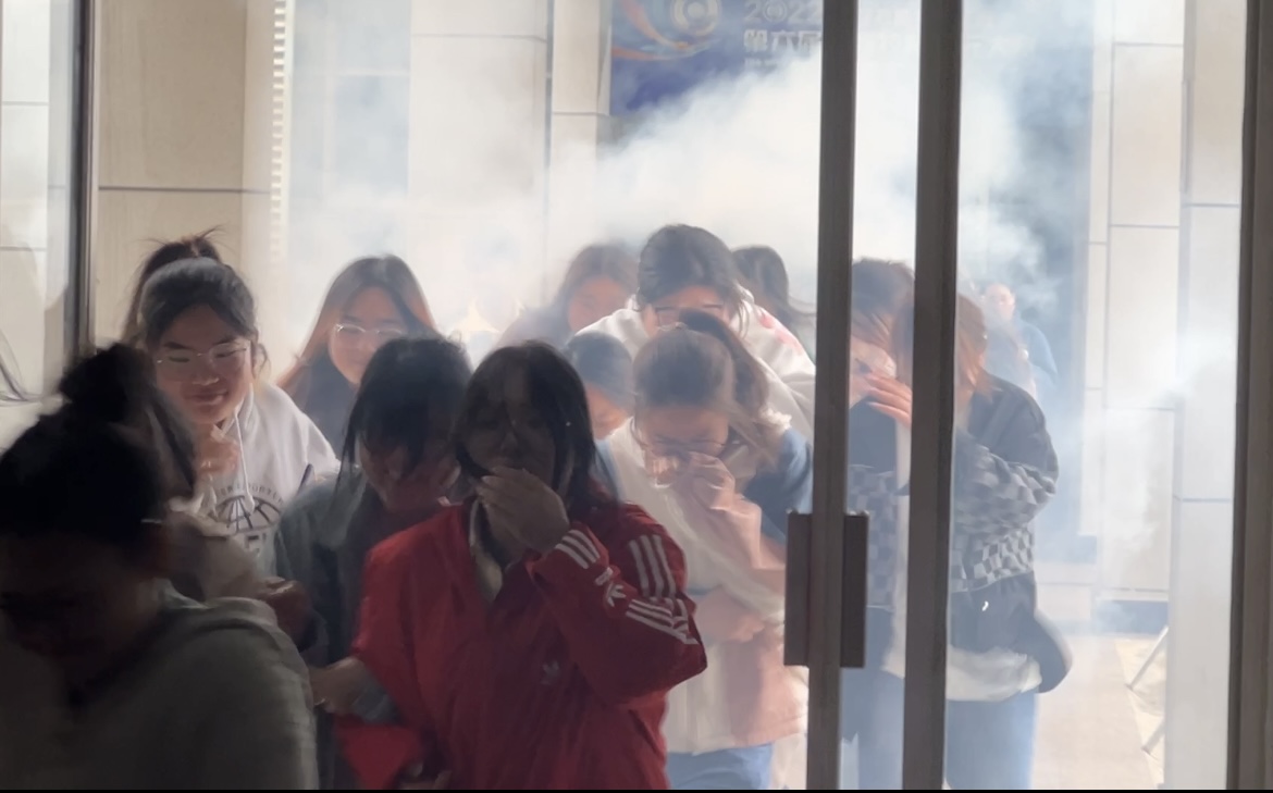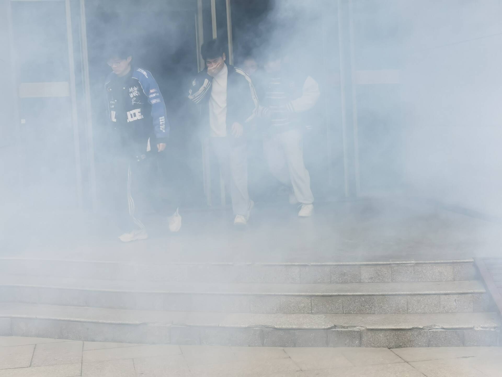 随着刺耳的警报声,同学们捂住口鼻,弓着身子,迅速有序疏散,整个过程紧张而有序,学院负责人随即清点疏散学生,活动达到了预期效果,同学们纷纷表示此次活动提高了消防安全意识和火灾逃生能力。