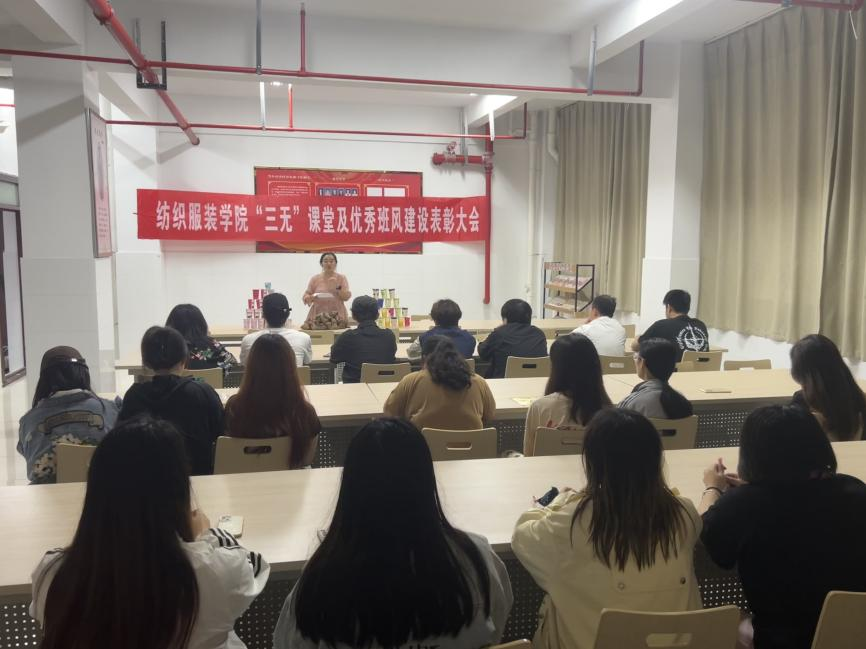 专业优秀作业评选结束后,纺服学院在8号楼学生社区召开学风建设表彰大会,纺服学院党总支副书记沈兆侠宣读有关表彰决定,勉励同学们继续进步,继续发挥带头作用,努力营造积极向上、求真笃实的学习氛围。