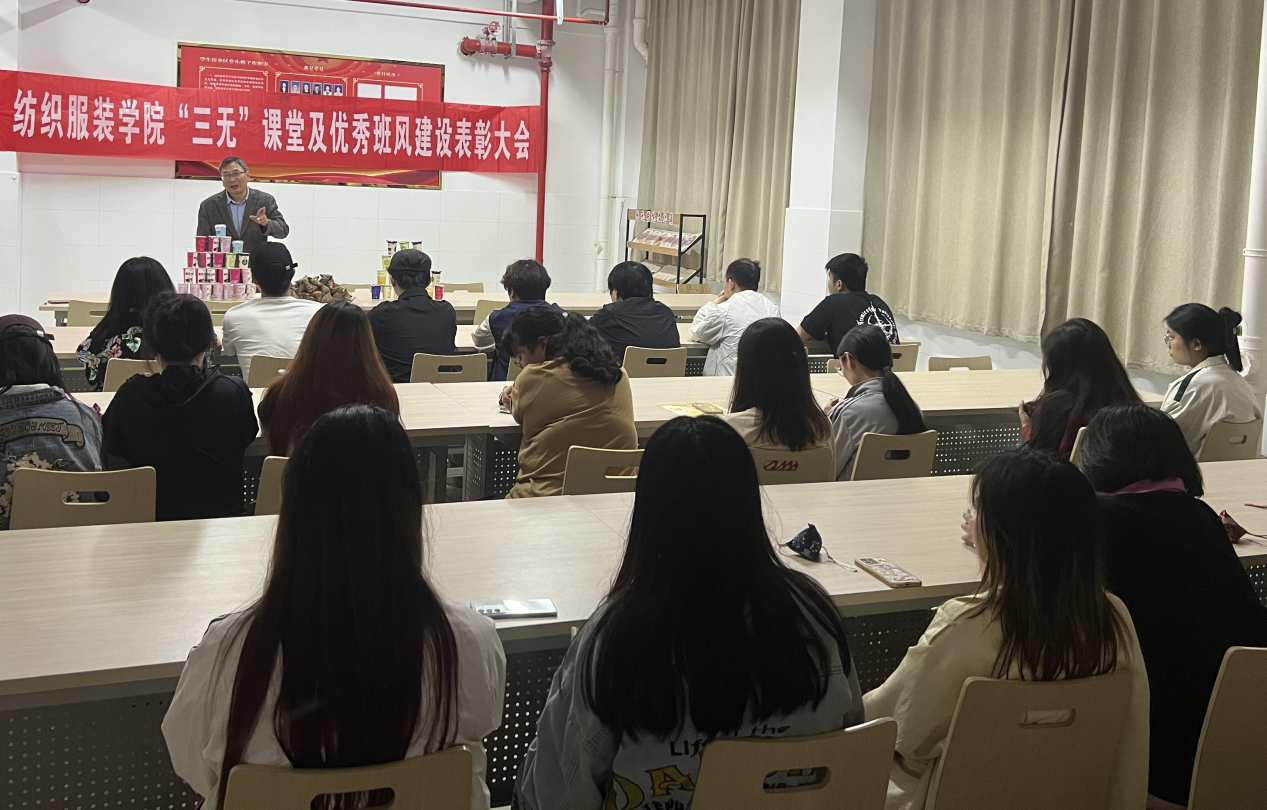 纺服学院党总支书记段七零作总结发言,勉诫同学们“三无”课堂及优秀班风的建设是为了更好地赋能同学们成长成才,对同学们提出了殷切希望,希望同学们能够做好个人发展规划,为将来的学历提升及就业做好布局,让自己的人生走向新的篇章。