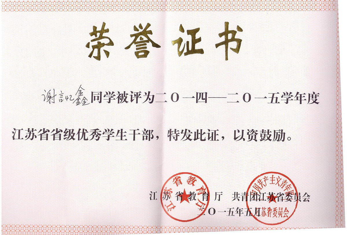 | 4 | 盛兰 江苏省普通高等学校本专科优秀毕业设计评选 |